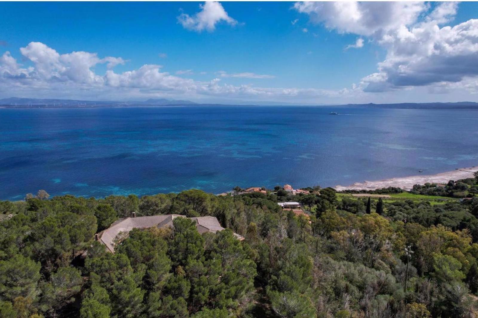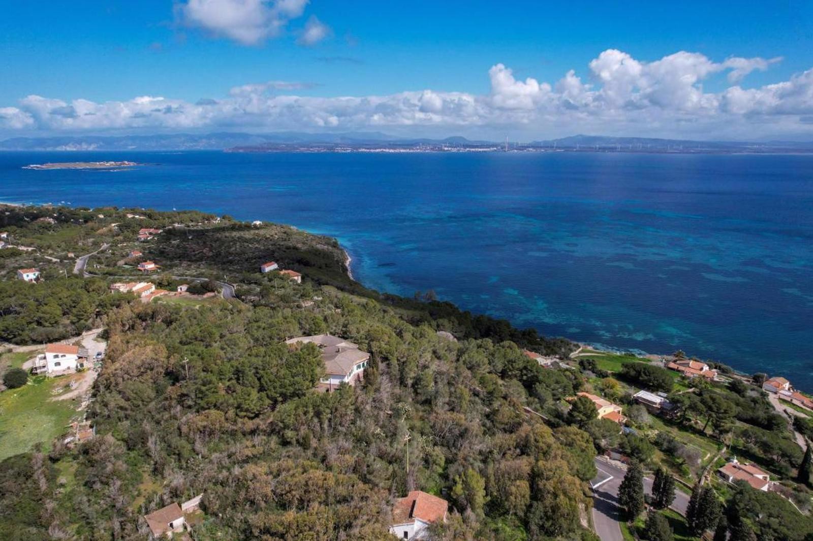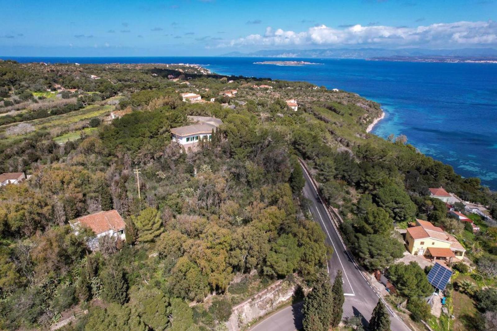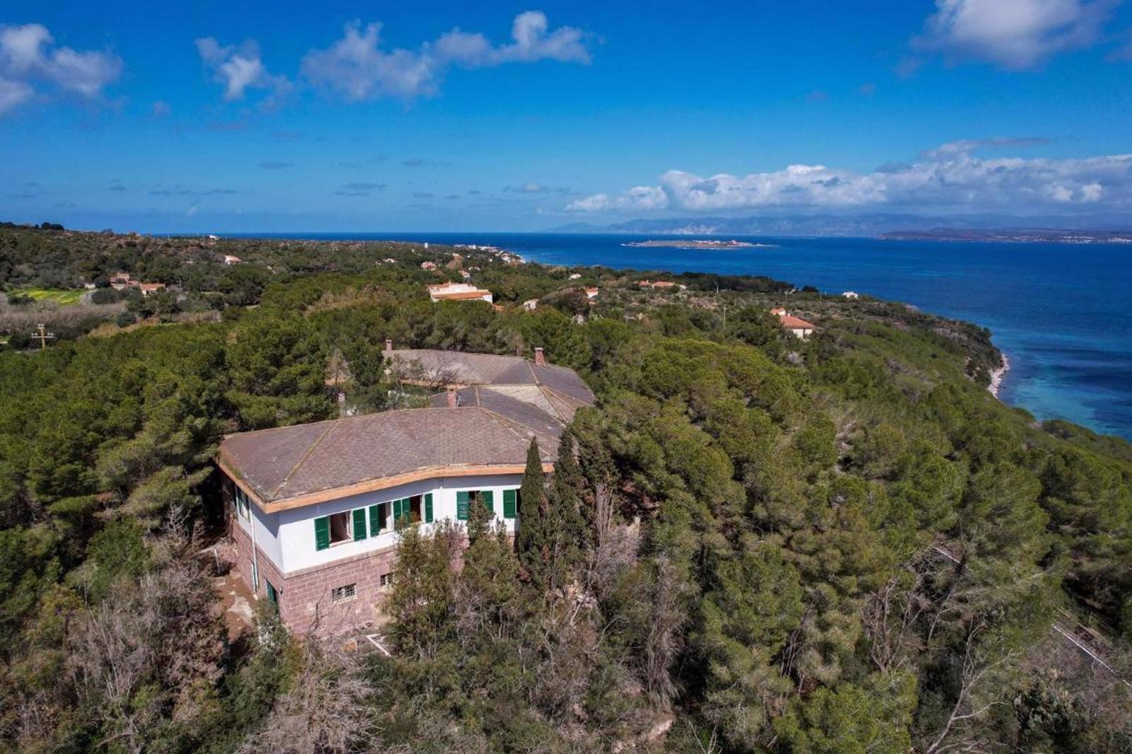 Property located on the island of San Pietro, Sardinia, with a main villa in a panoramic position overlooking the sea, accessory buildings, surrounding land of about 2.7 hectares and a private pier for docking small boats.