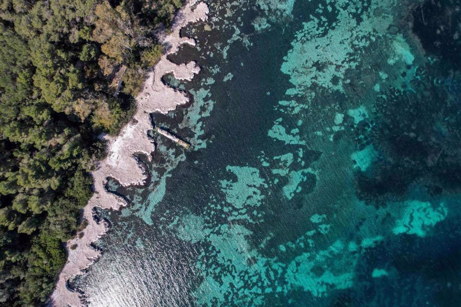 The property includes an area of about 2.7 hectares, part of which extends to the sea. The property has paved yards, natural grounds, and multiple accesses, including a secondary one from the public road.