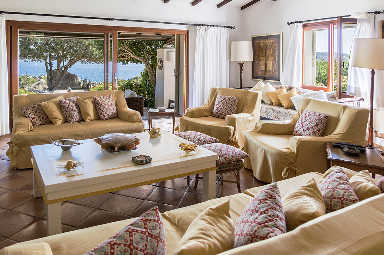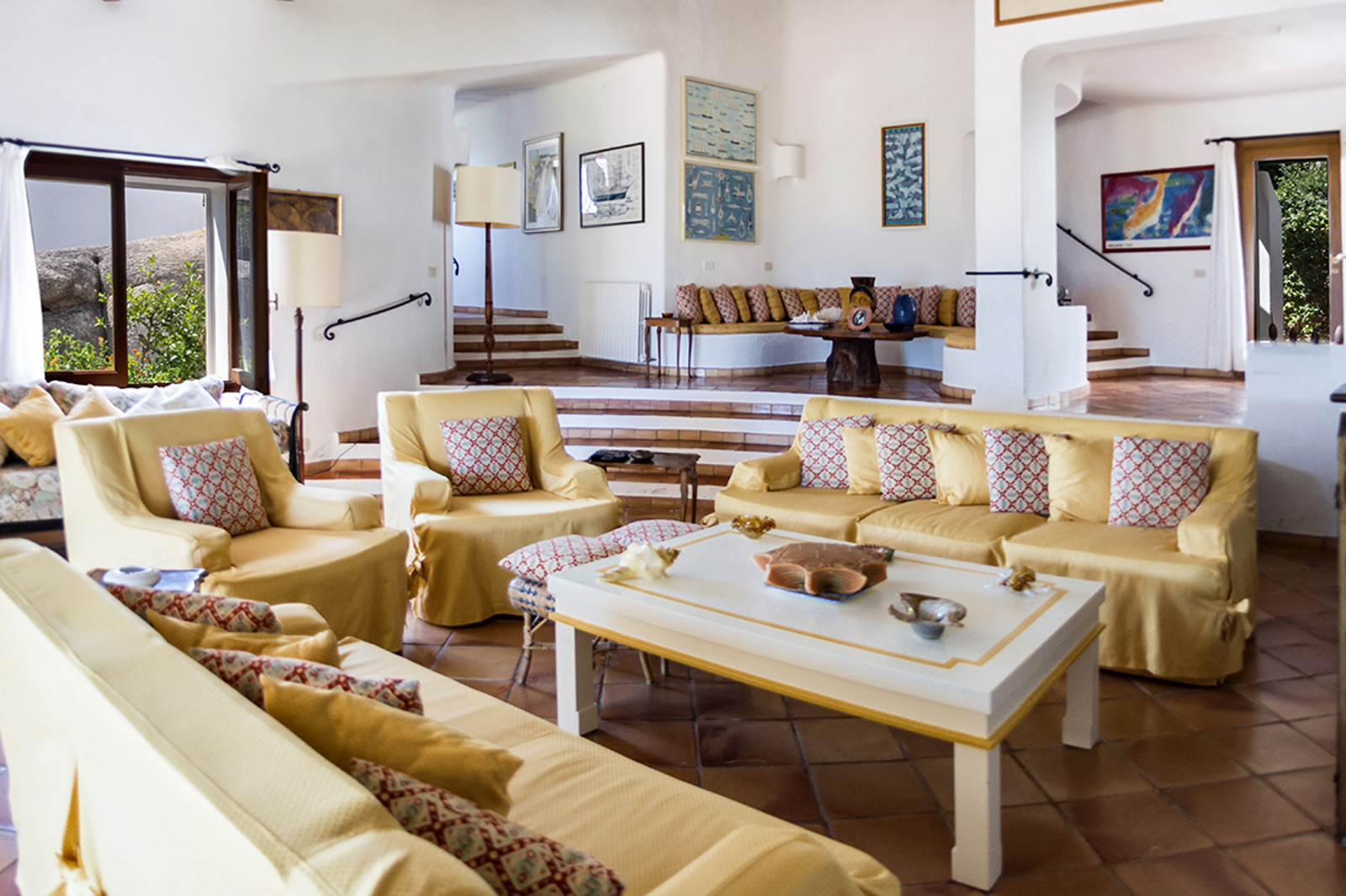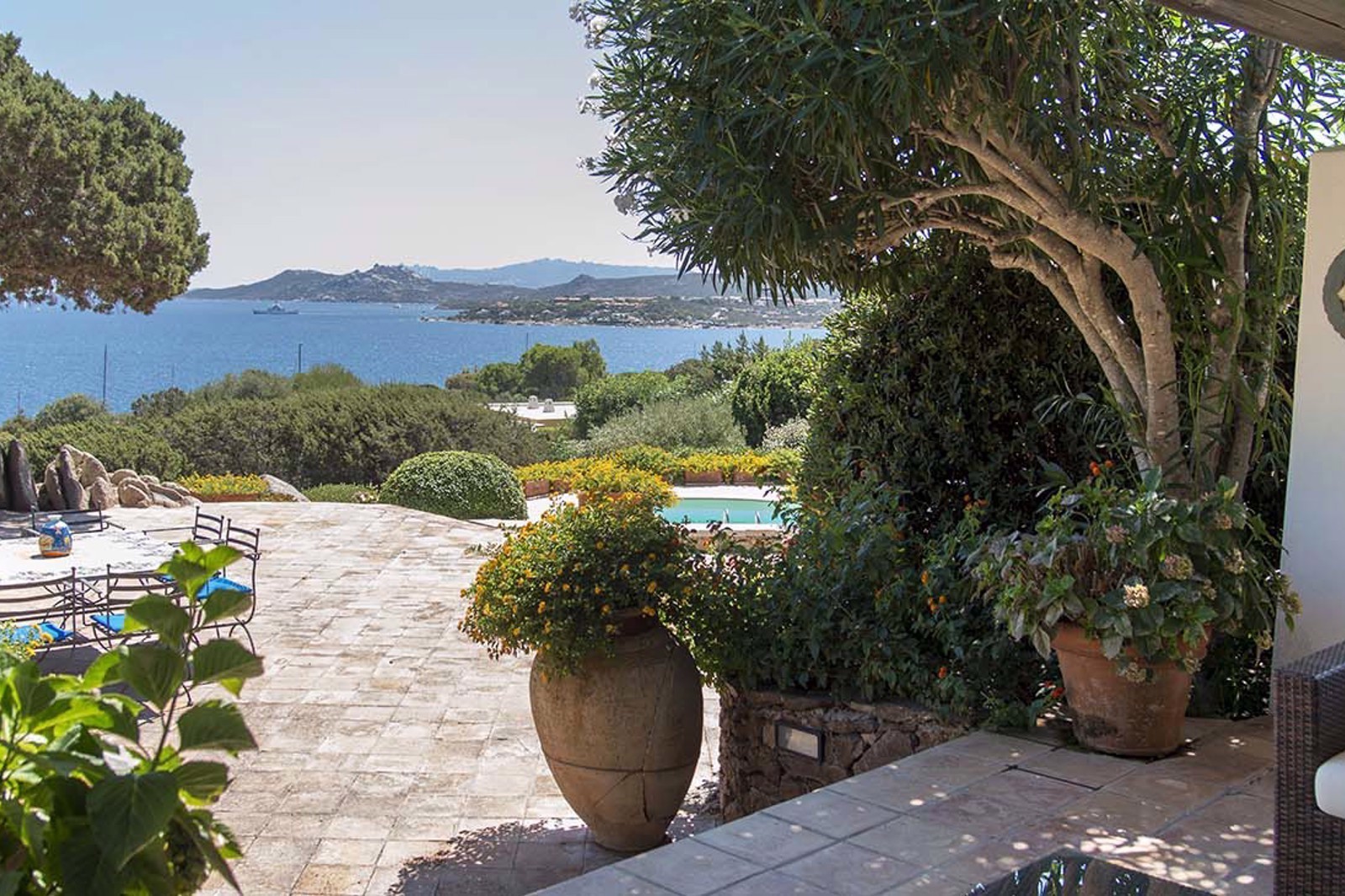 In a panoramic position with proximity to the beach and marina, this impressive 450 sqm villa is spread over two floors. The ground floor features spacious and bright living areas with lounges with large glass windows and a fireplace, in addition to the fully equipped kitchen and cosy dining room. Going up to the second floor via the imposing internal staircase is the quiet sleeping area consisting of no less than 6 charming and spacious bedrooms and 7 bathrooms. The delightful outbuilding features more modern finishes, is spread over a single floor and houses the kitchen, dining area, a bedroom and a bathroom. Completing the interior spaces is the fully equipped wine cellar.