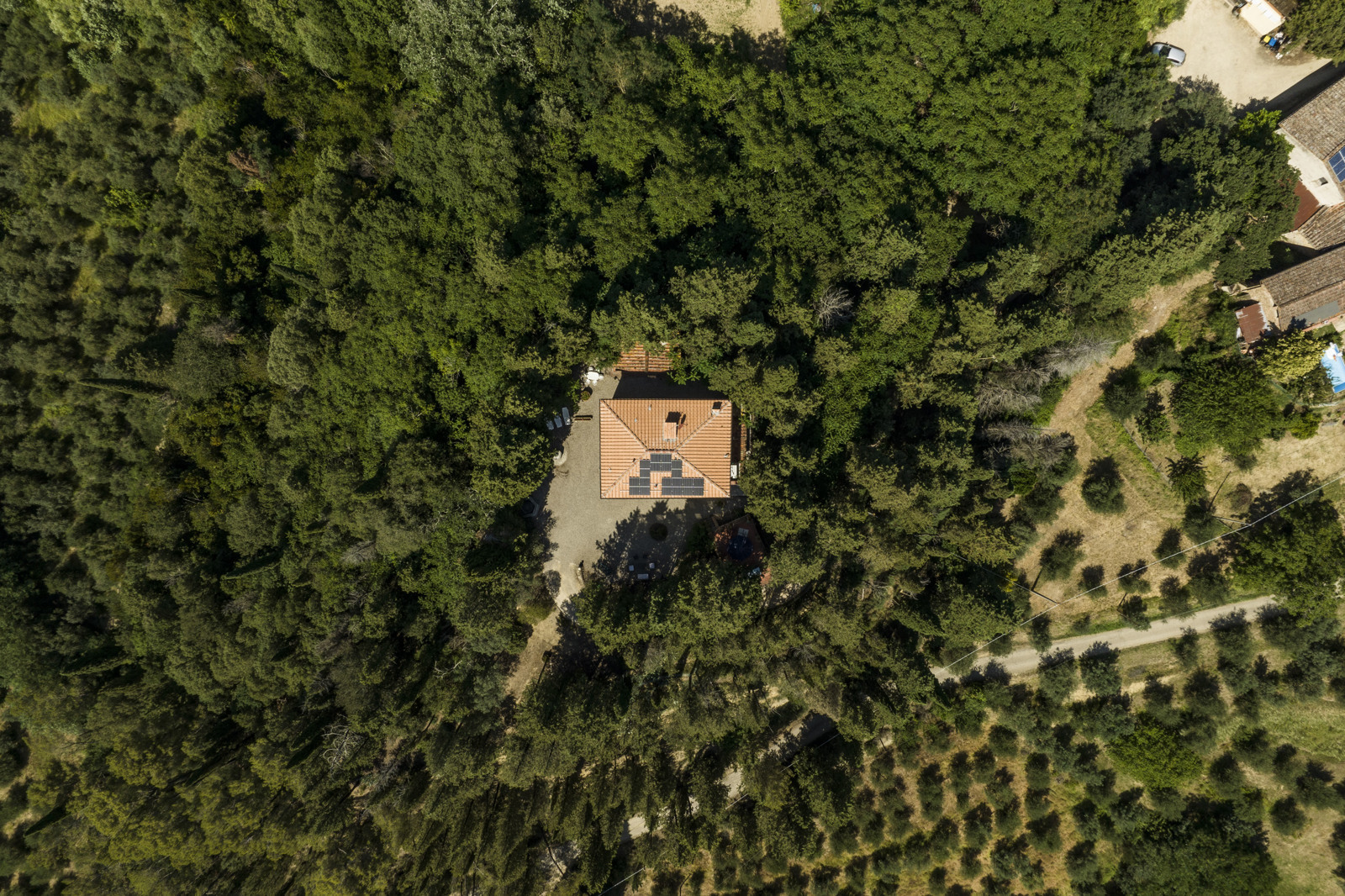 The property is immersed in its own land of about 9000 sqm, mainly woodland, and is surrounded by the private gravel courtyard hosting a terrace with tables and chairs as well as an oven and barbecue perfect for organizing outdoor dinners and enjoying the pleasant Tuscan climate.