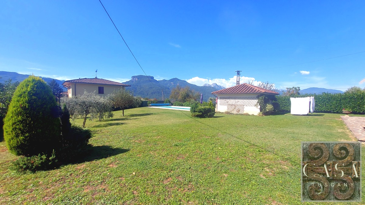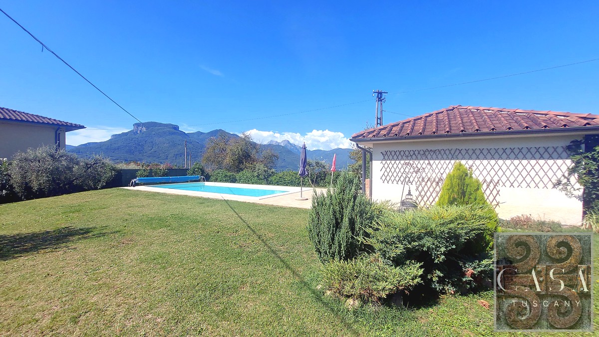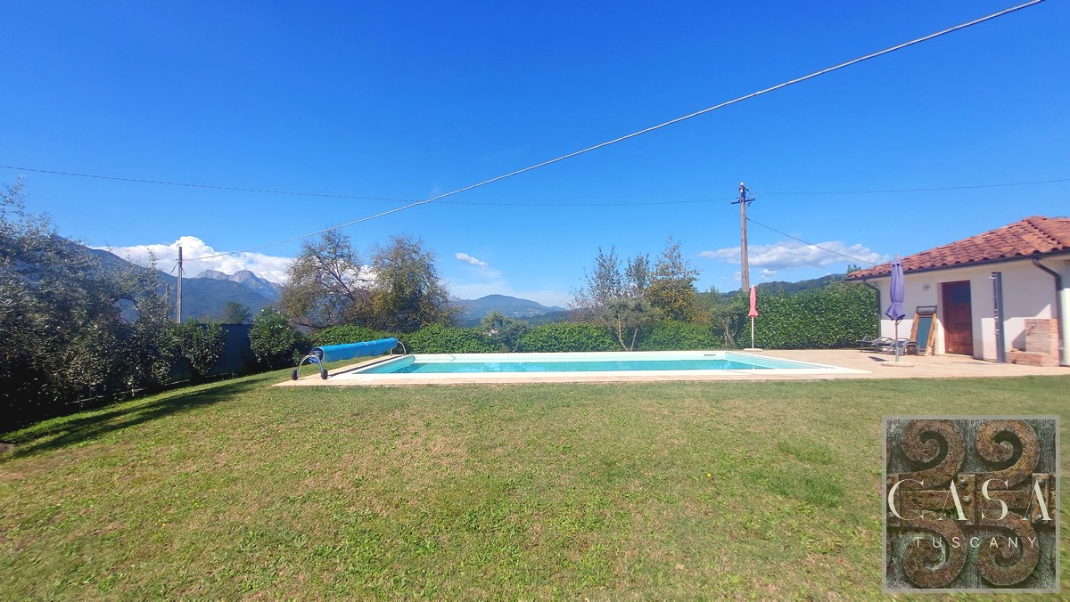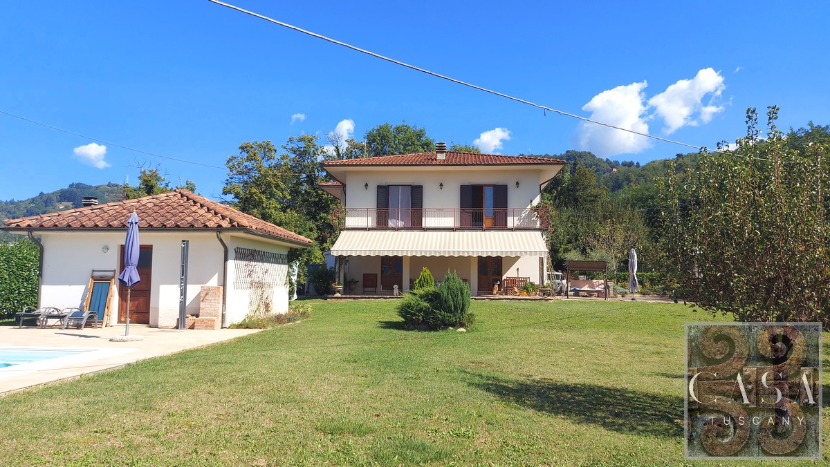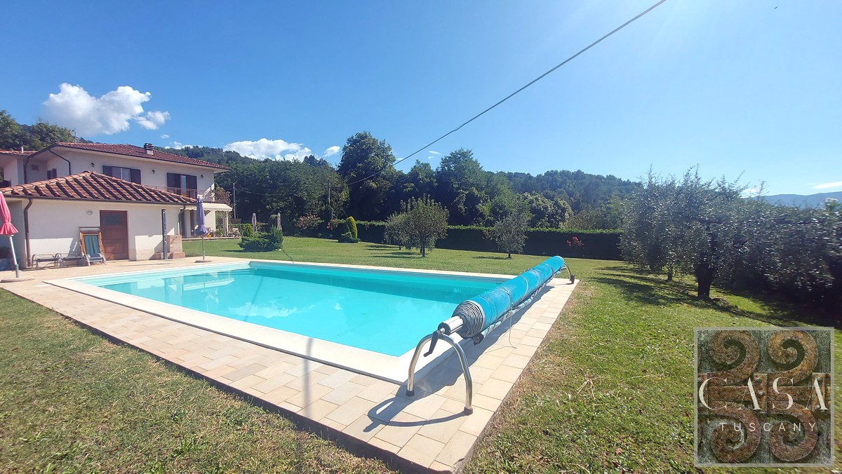 Villa for sale with pool and large garden, located near Piano di Coreglia in the Lucca province of Tuscany, in a beautiful position with views and close to all essential services.