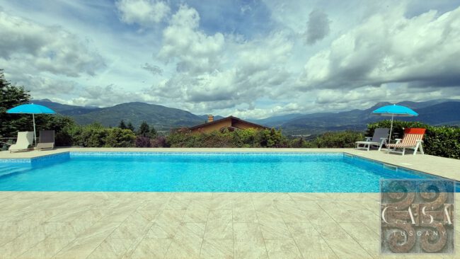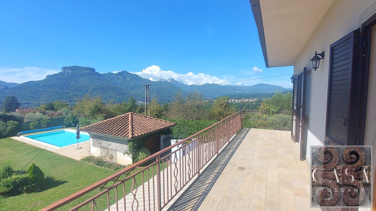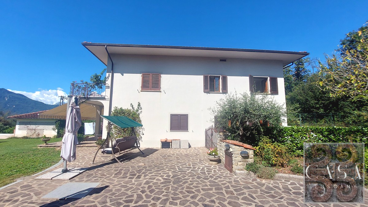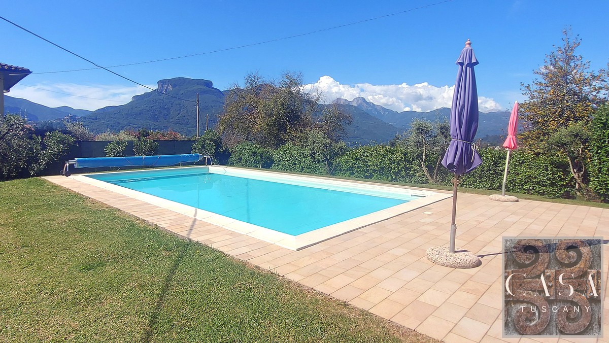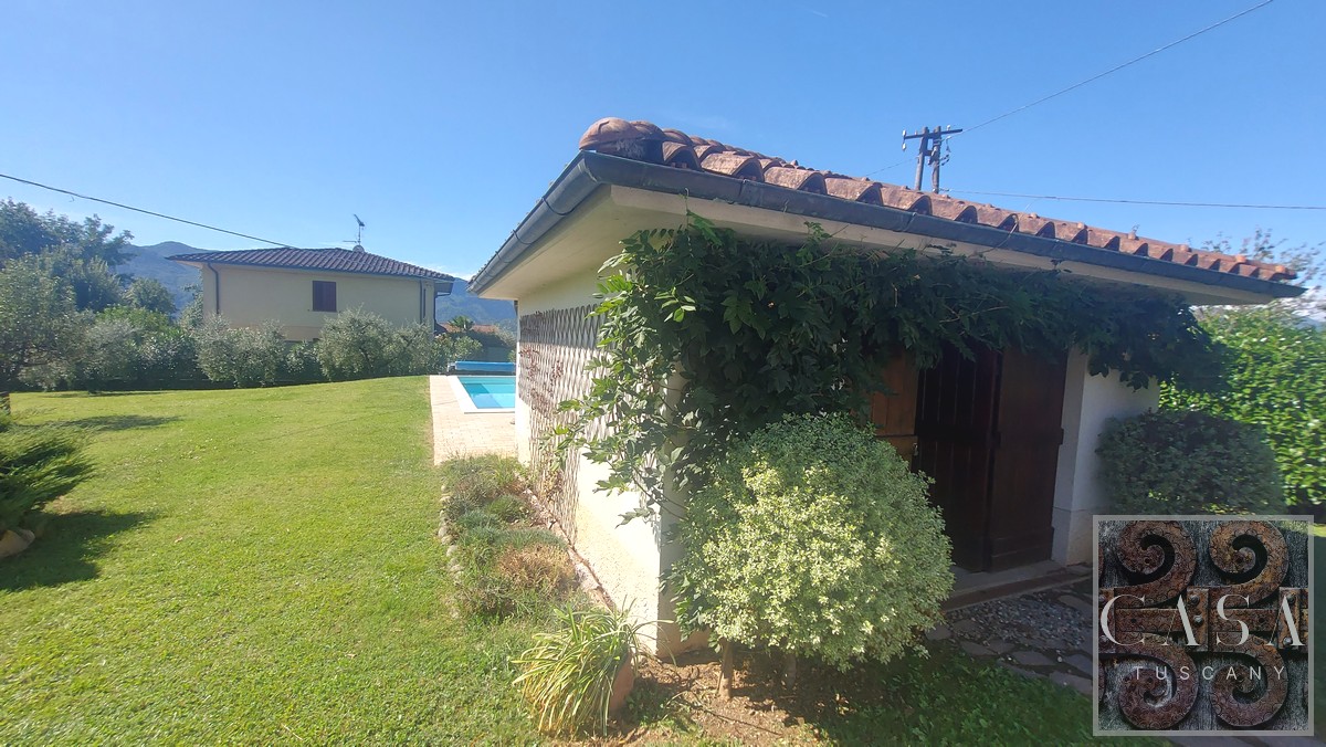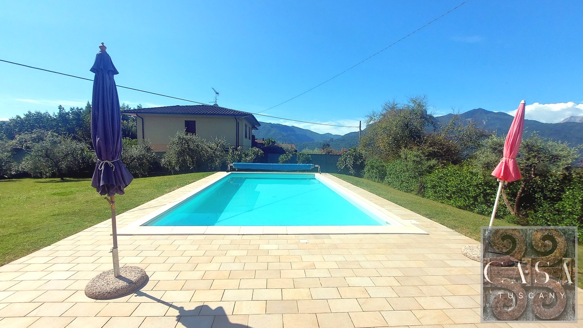 Villa for sale with pool and large garden, located near Piano di Coreglia in the Lucca province of Tuscany, in a beautiful position with views and close to all essential services.