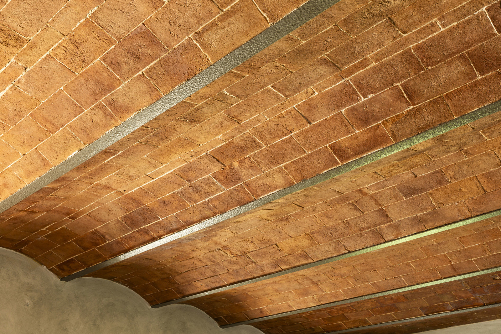 The main house is spread over two levels. You enter the large living room characterised by an ancient fireplace, and the vaults on this floor are stunning.