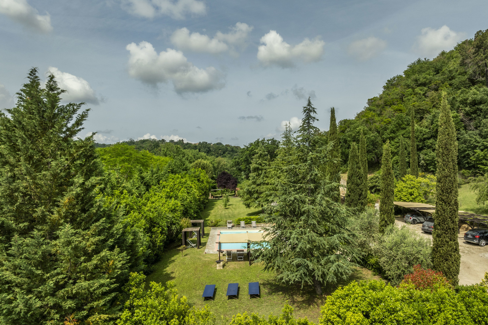 The land of about 2.1 hectares is partly garden, partly forest, partly cultivated with truffle hazelnuts, the property includes the shaded walkway on the bank of the river Era. There is a very old wine cellar carved out of the rock.