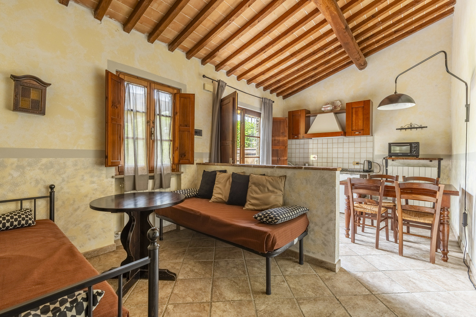 The apartments and rooms all enjoy independent entrances and private outdoor space. They consist of a kitchenette in the living room, one or two double bedrooms with their respective bathrooms.