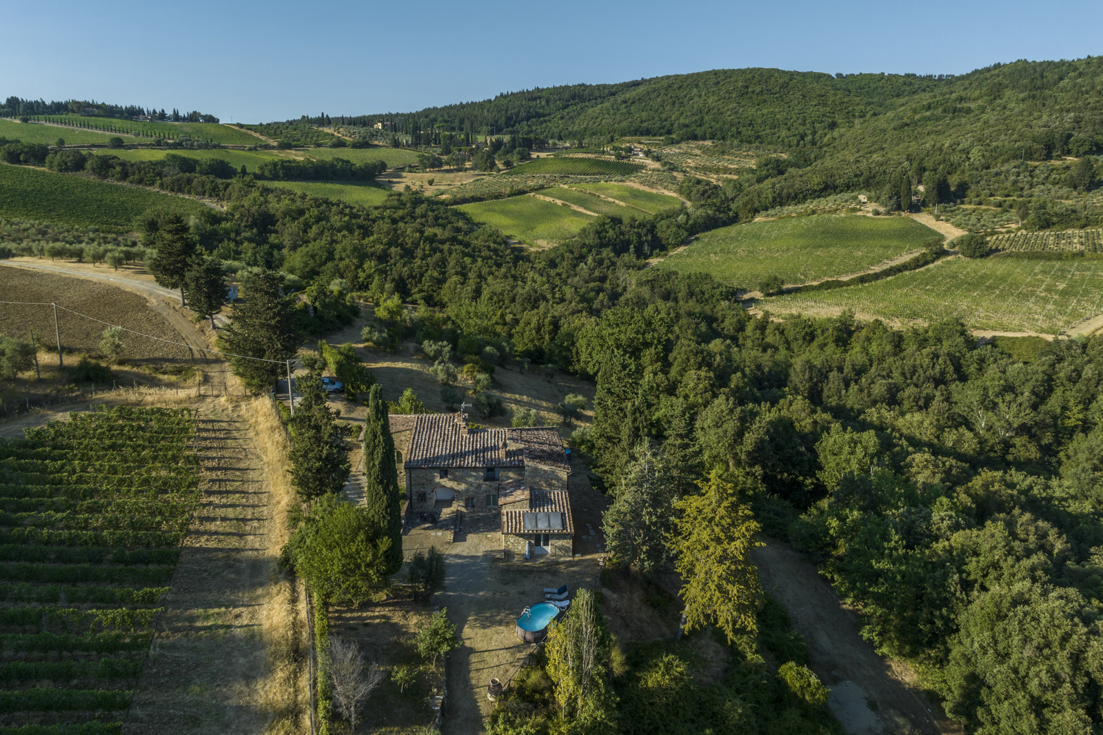Wine and olive oil farm of the highest quality consisting of 166 hectares in the heart of Chianti Classico 40 kilometers from the historic city of Florence.