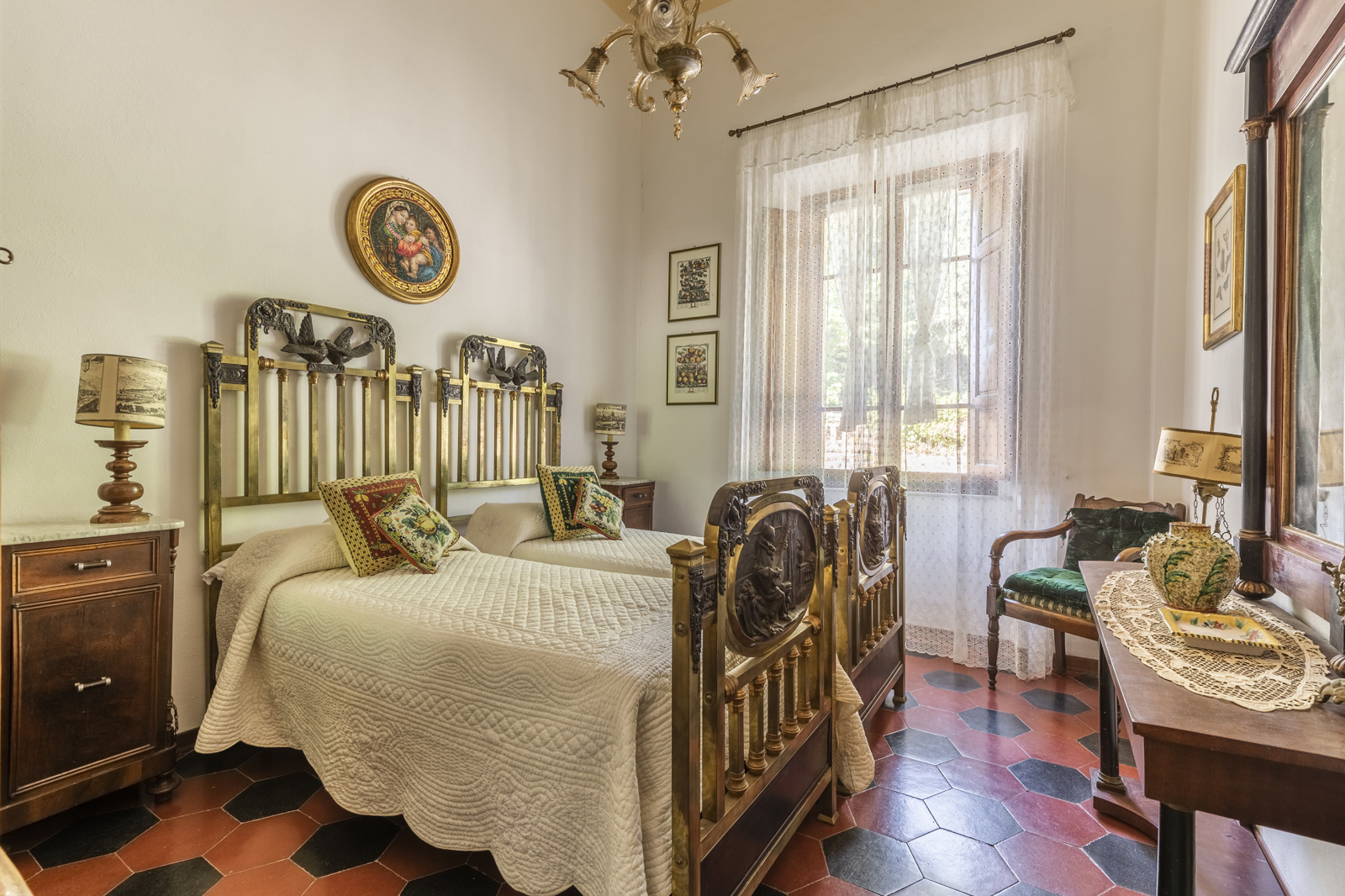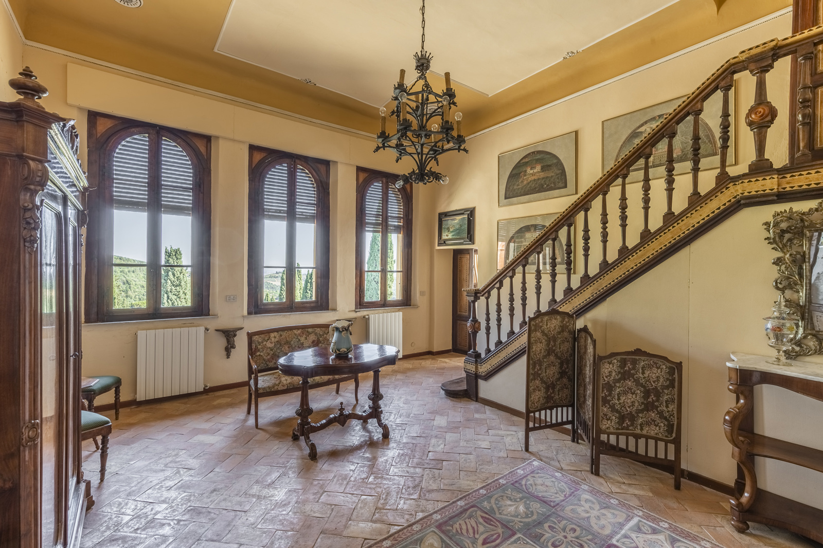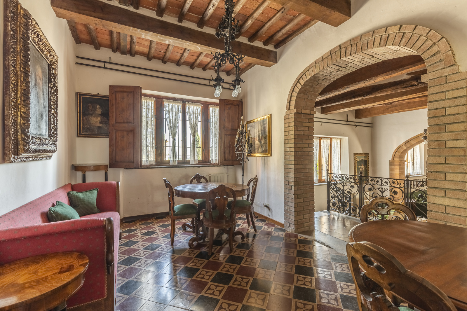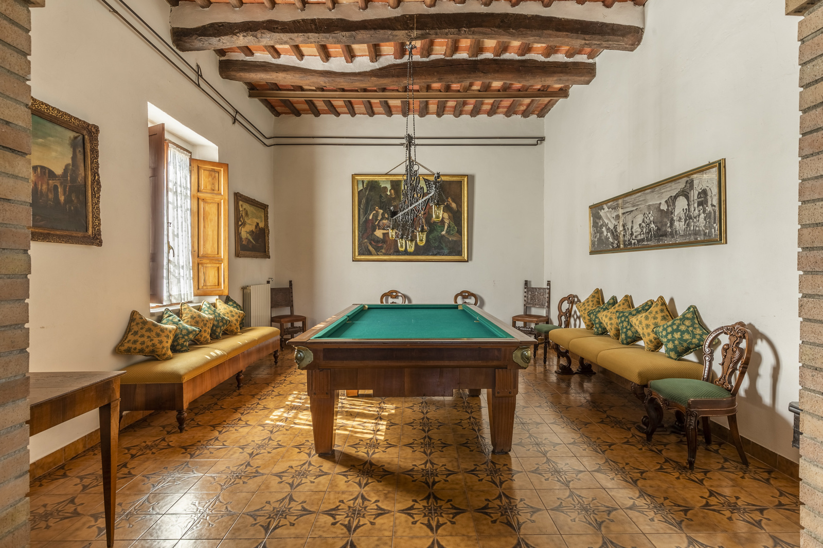 The large estate complex is excellently maintained. The renovation has been conservative and typical Tuscan with terracotta floors and chestnut wood beams. The high ceilings of the villa and the large windows give natural light to the living area, the bathrooms are in precious ceramics and the ancient stone fireplaces very scenic. The part intended for the farmhouse is in stone, the rooms are tastefully furnished in rustic style and very welcoming. The facilities are up to standard, the various structures does not require extraordinary maintenance work.