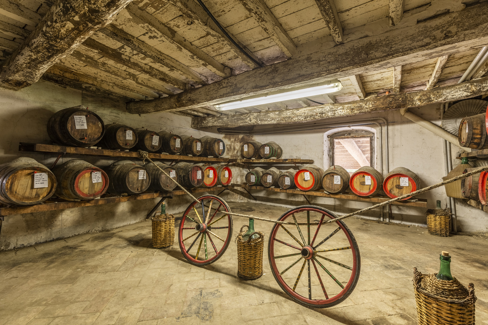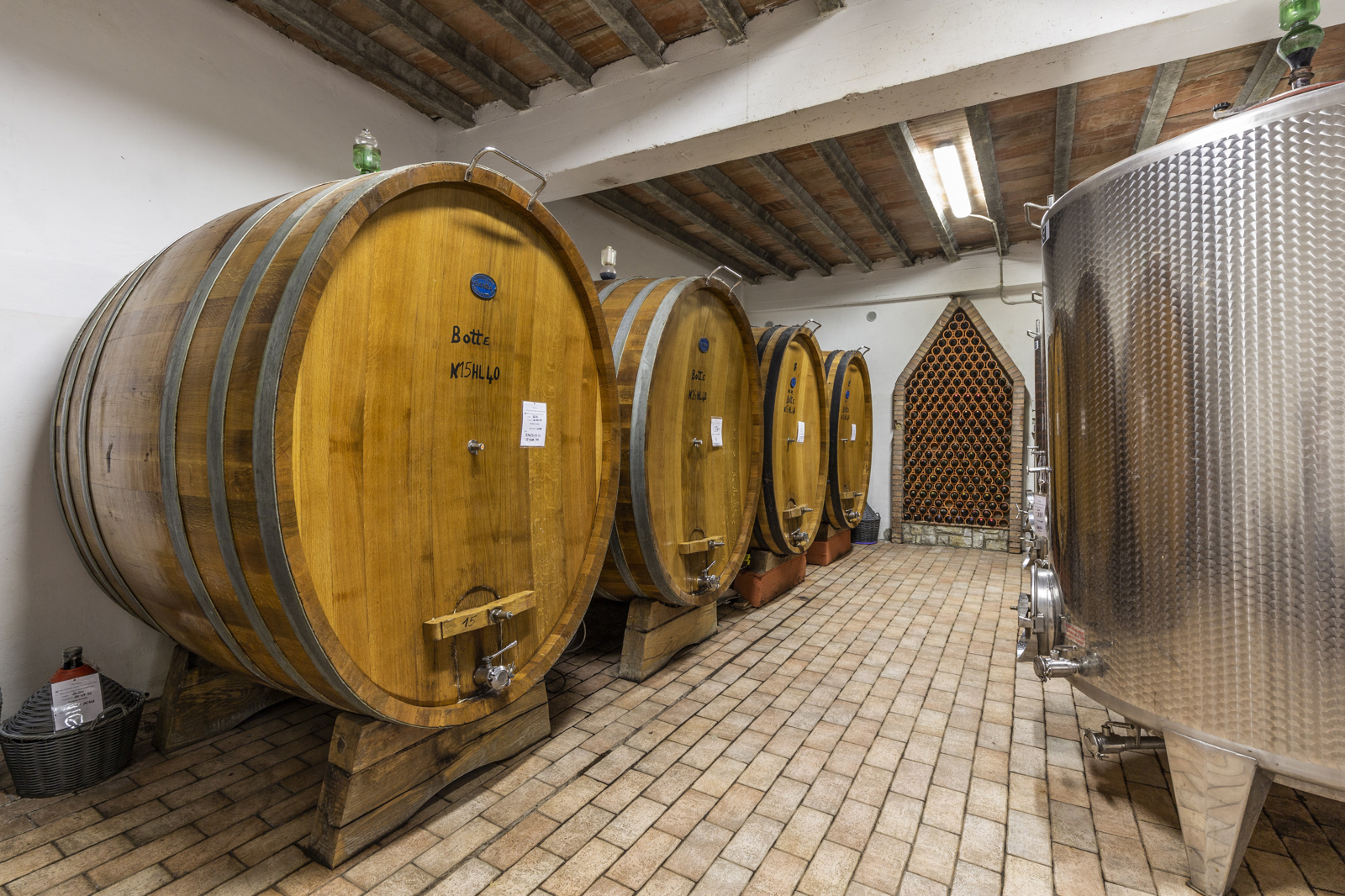 The state-of-the-art wine cellar for the production of wine is about 1100 sqm, the oil mill about 170 sqm. Italian excellence in the heart of Tuscany.