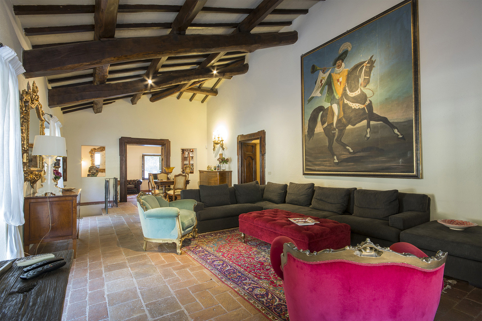 A short dirt road leads to the property which has open panoramic views and is surrounded by vineyards, olive groves, and centuries-old oak forests on over 12 hectares / 31 acres of private grounds.
