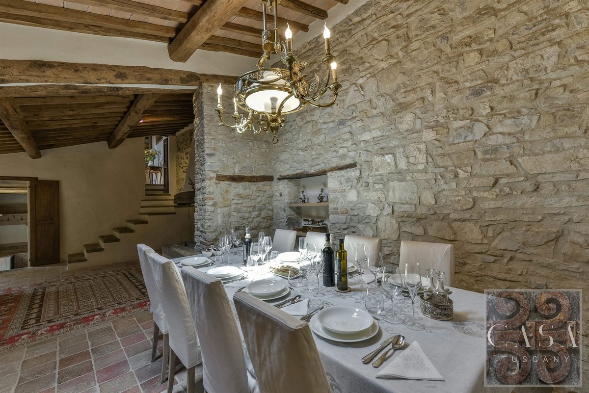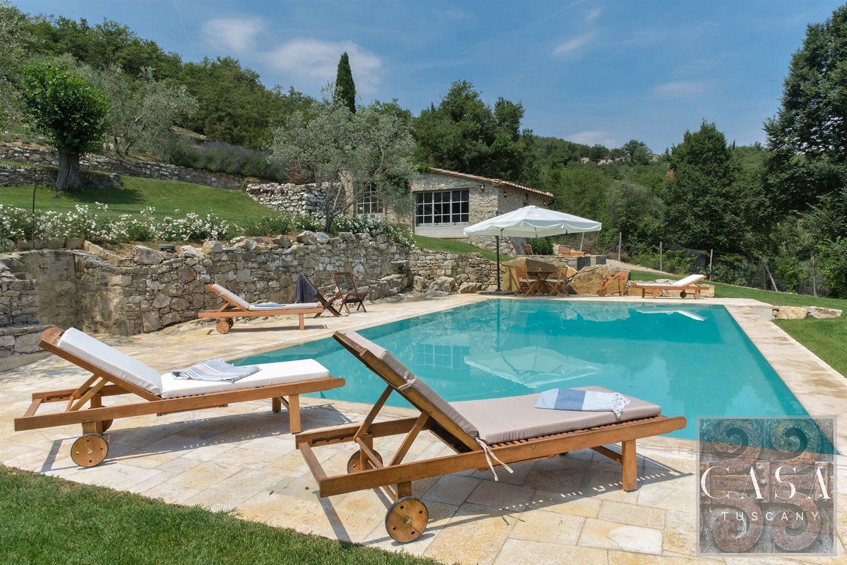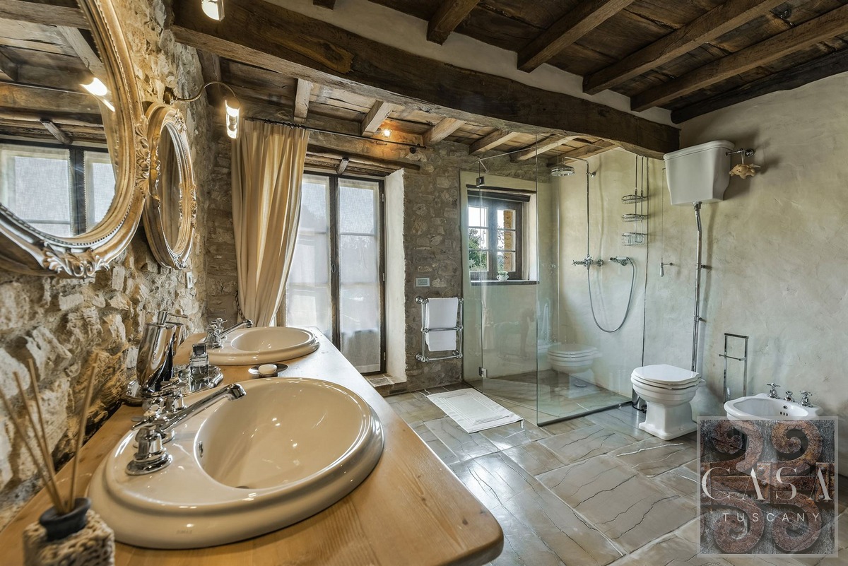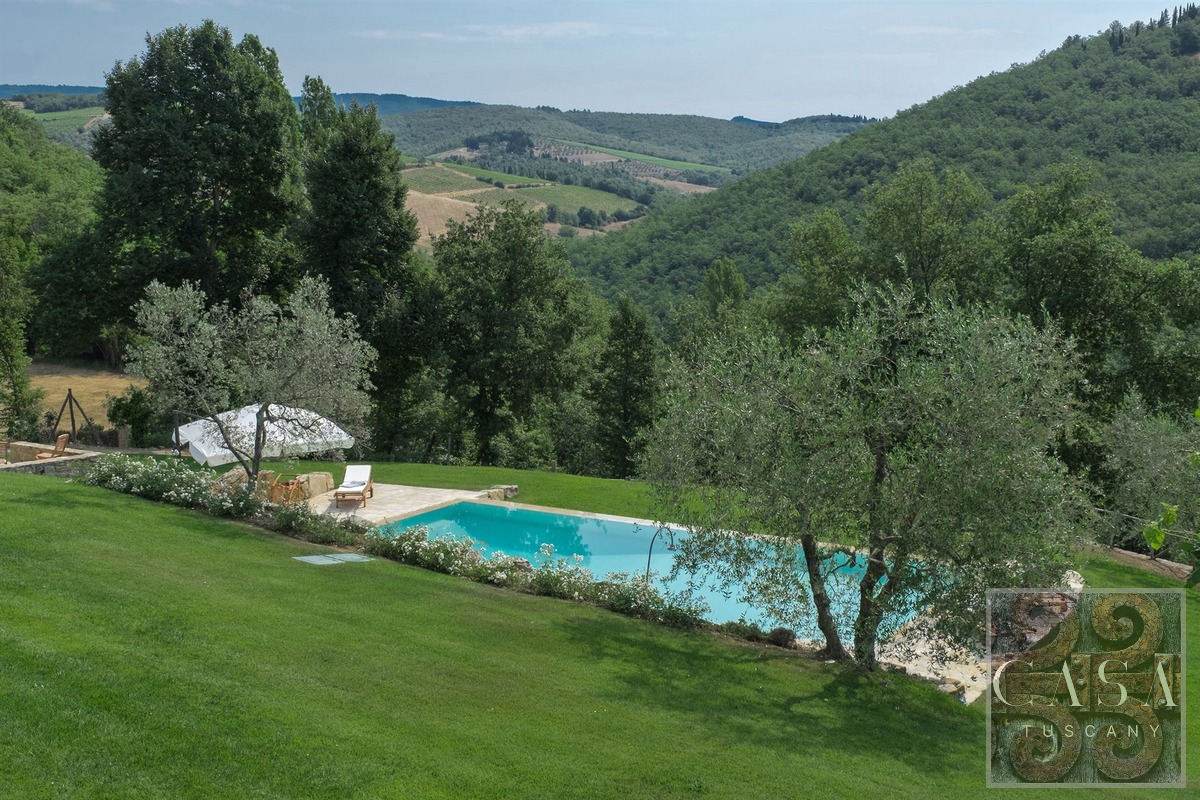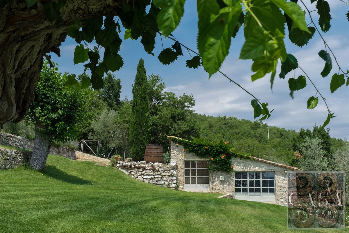 The property is surrounded by a large park and private land with olive grove, Chianti Classico DOCG vineyards and forest. Perfect as a retreat in the Chianti Classico region, ready to live in and enjoy with family and friends, or for hosting tourists for their stays in Tuscany.