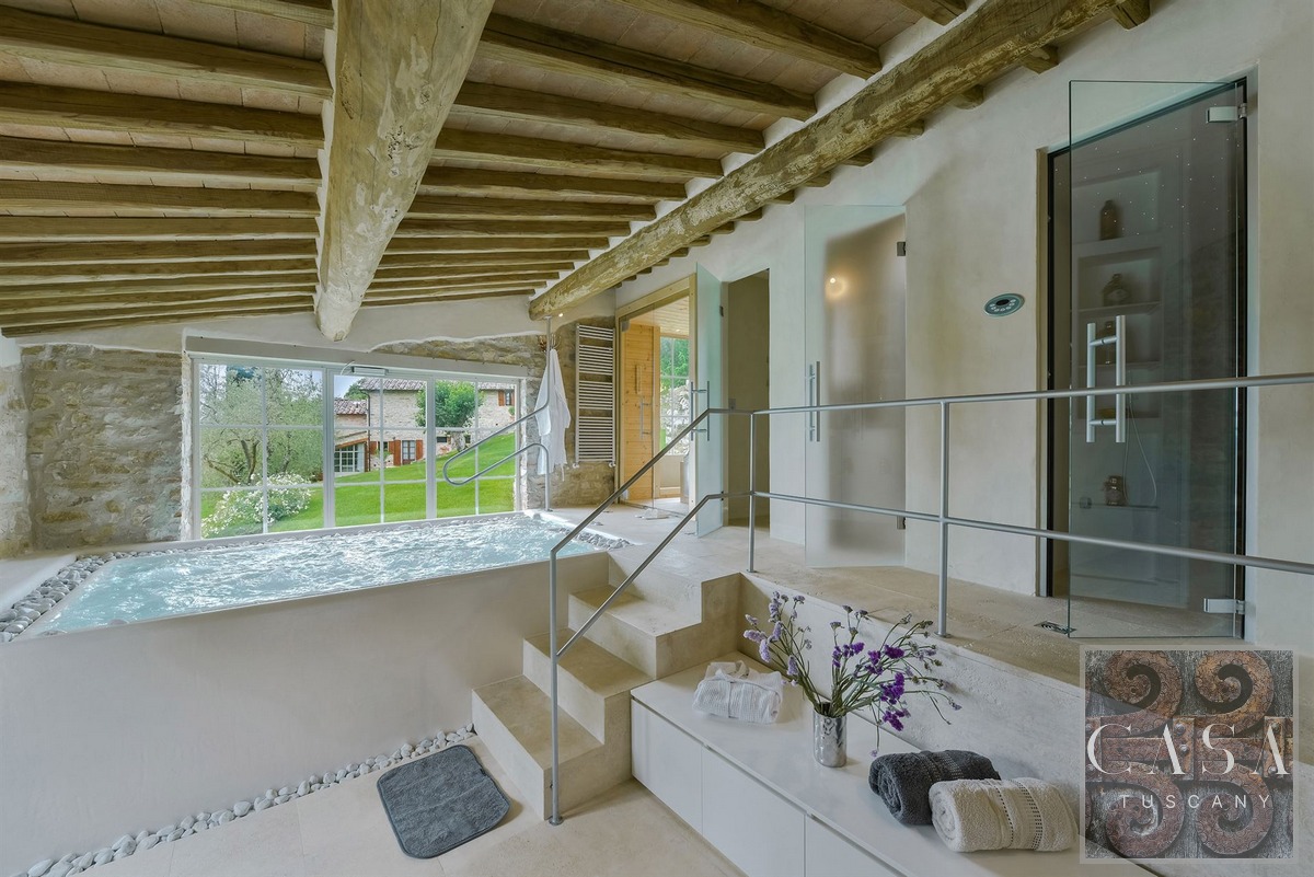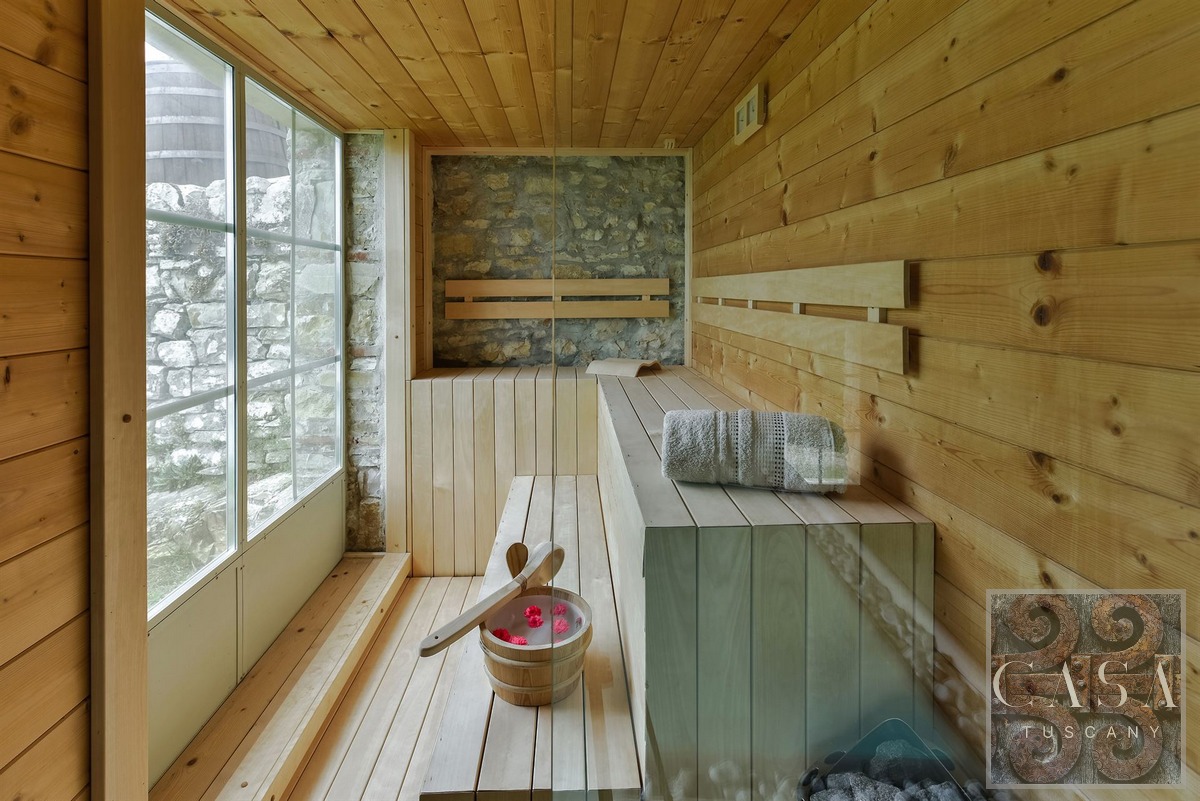 In front of the pool, an annex has been converted into a modern spa with a Jacuzzi and heated water, sauna and Turkish/steam bath.