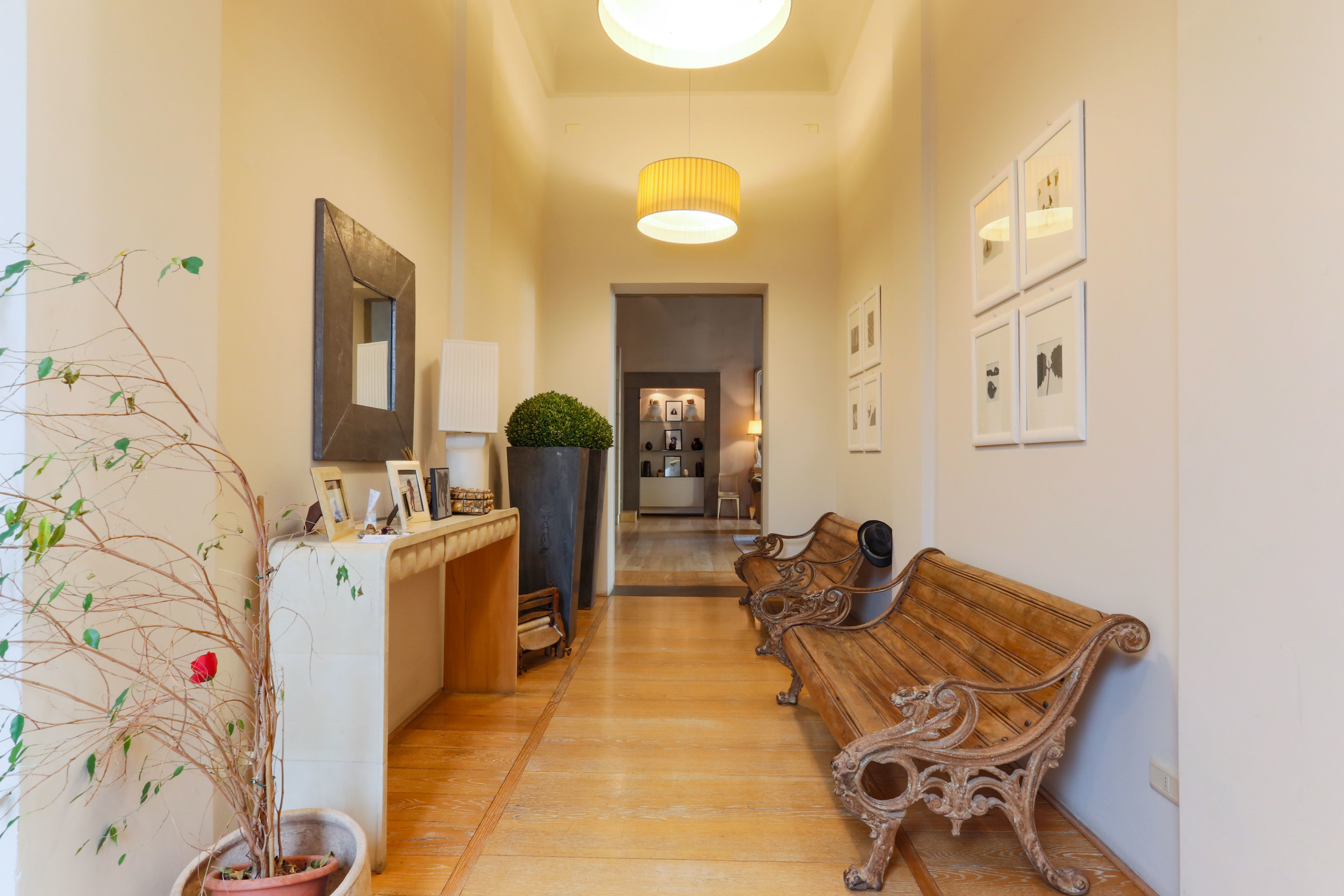 The heart of Florence is made up of numerous small streets that cross each other and which constitute a network of small hidden treasures, around every corner, behind every door you can hide from the view of the most unimaginable treasures that testify to the city’s past. And so, crossing the door of this historic building, appear the garden, frescoed vaults and hallways with imposing stairways.