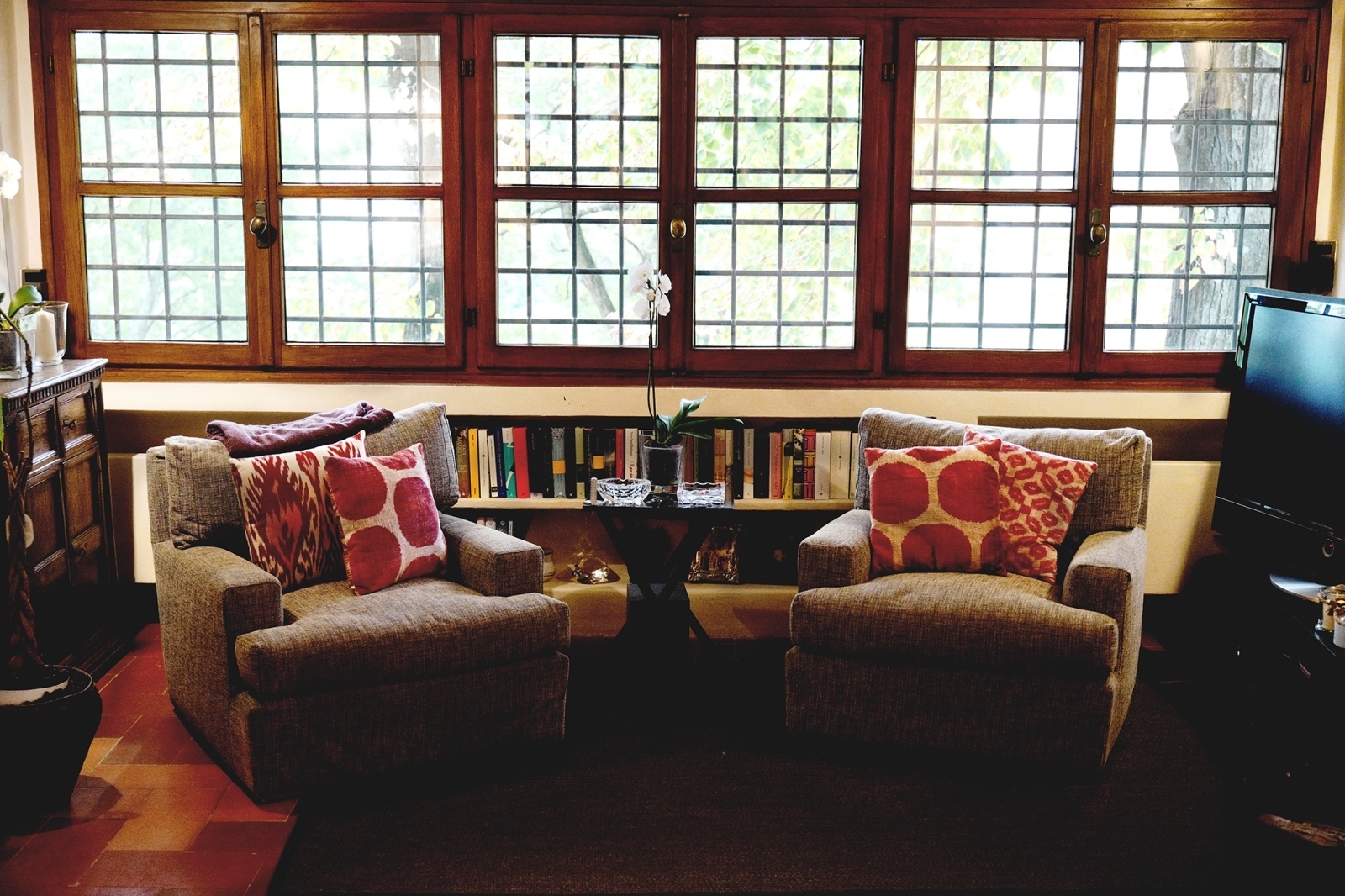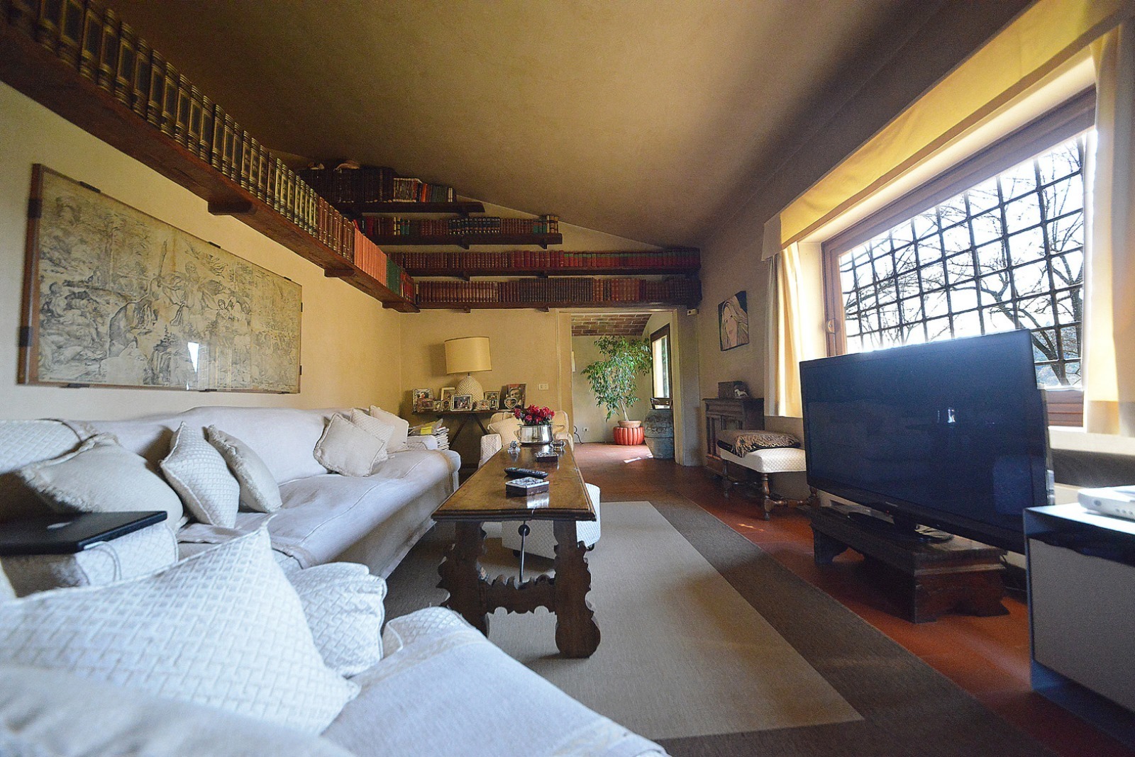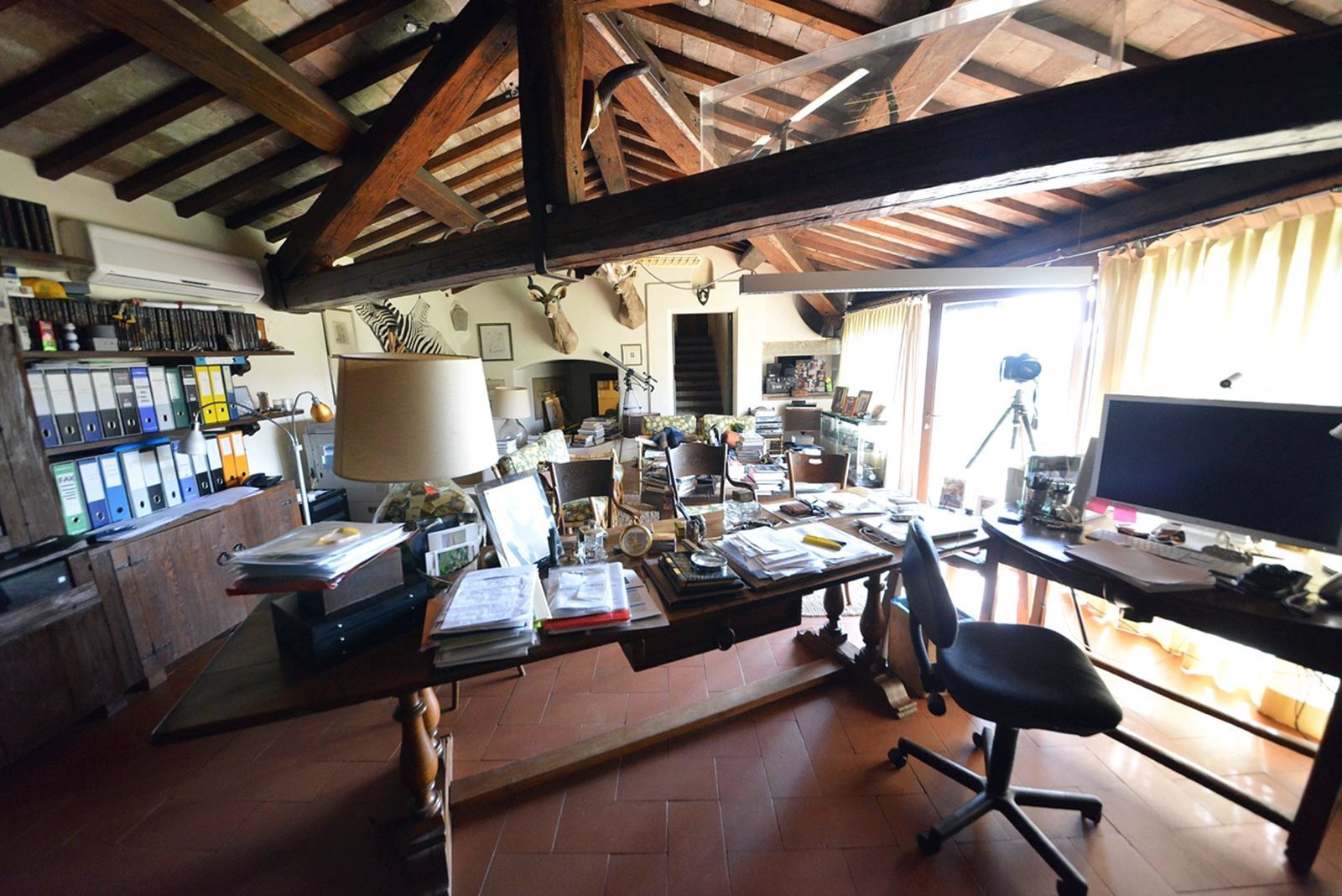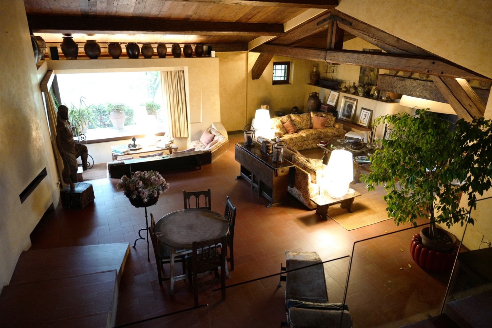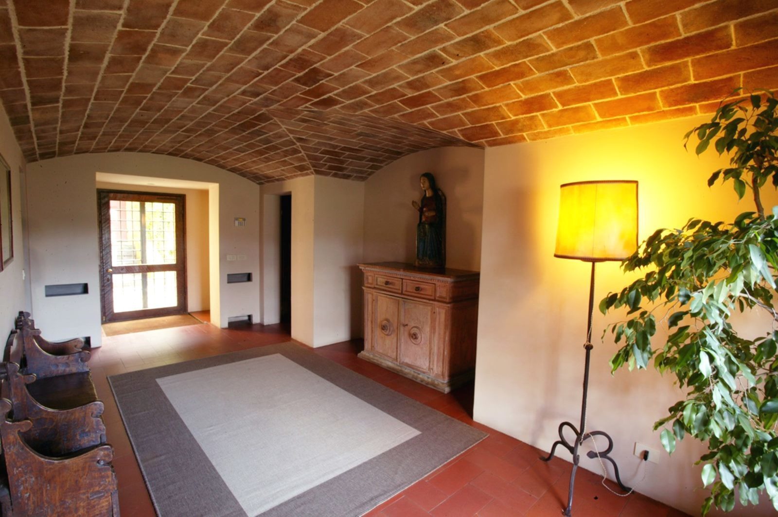 The window frames are made of wood with double glazing and a wooden shutter in green. All windows and external accesses are equipped with metal grating. The main interior doors are made of solid recycled chestnut wood and are wax coated. The floors of all the rooms are in terracotta from Impruneta, made by Manetti, in the classic measures of 17 cm * 36.