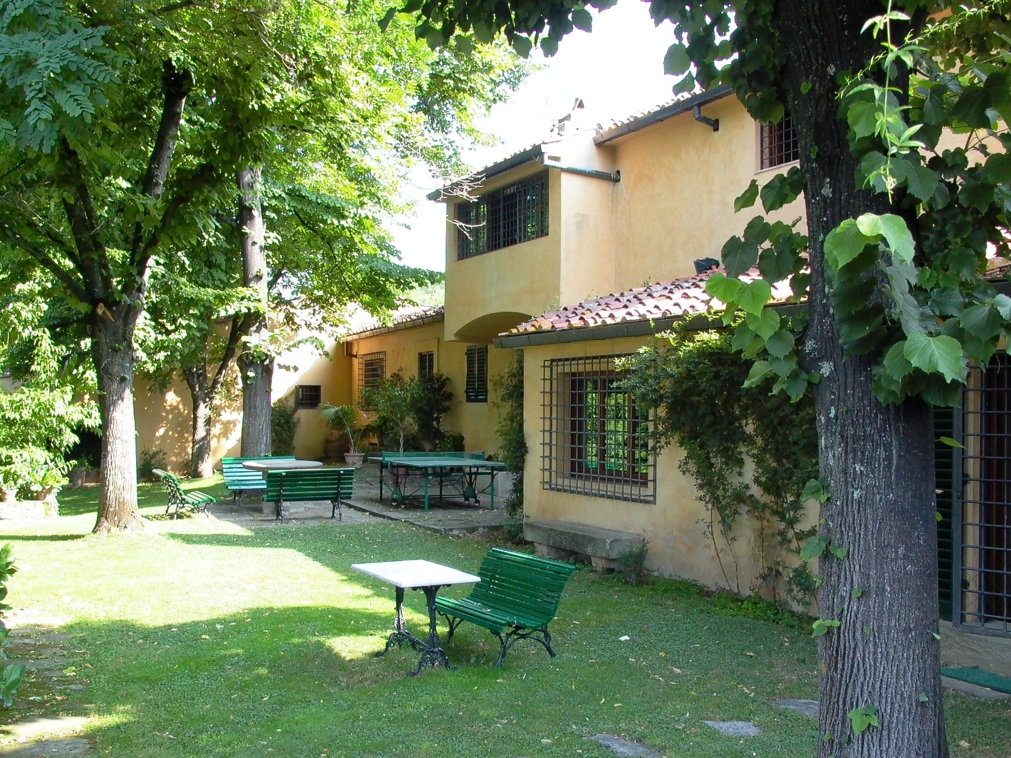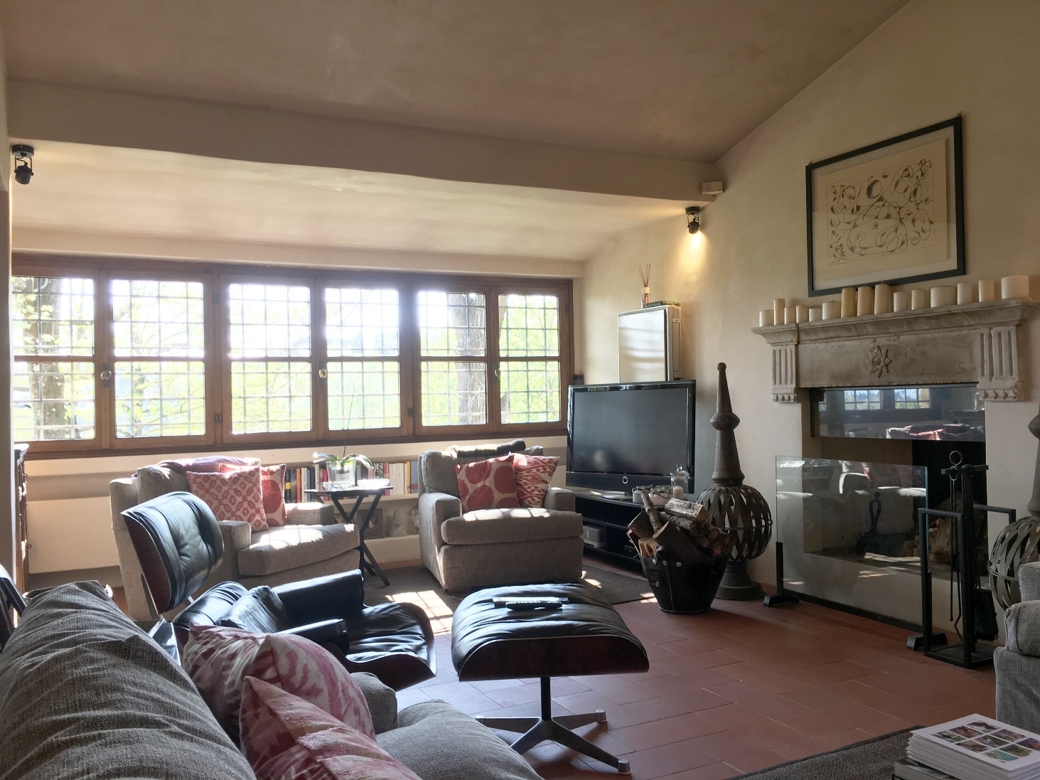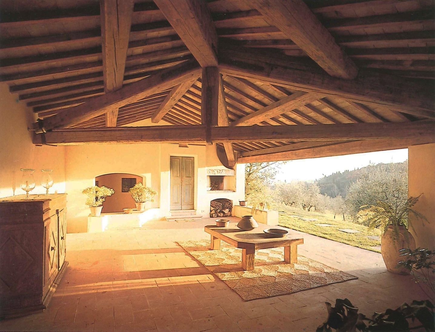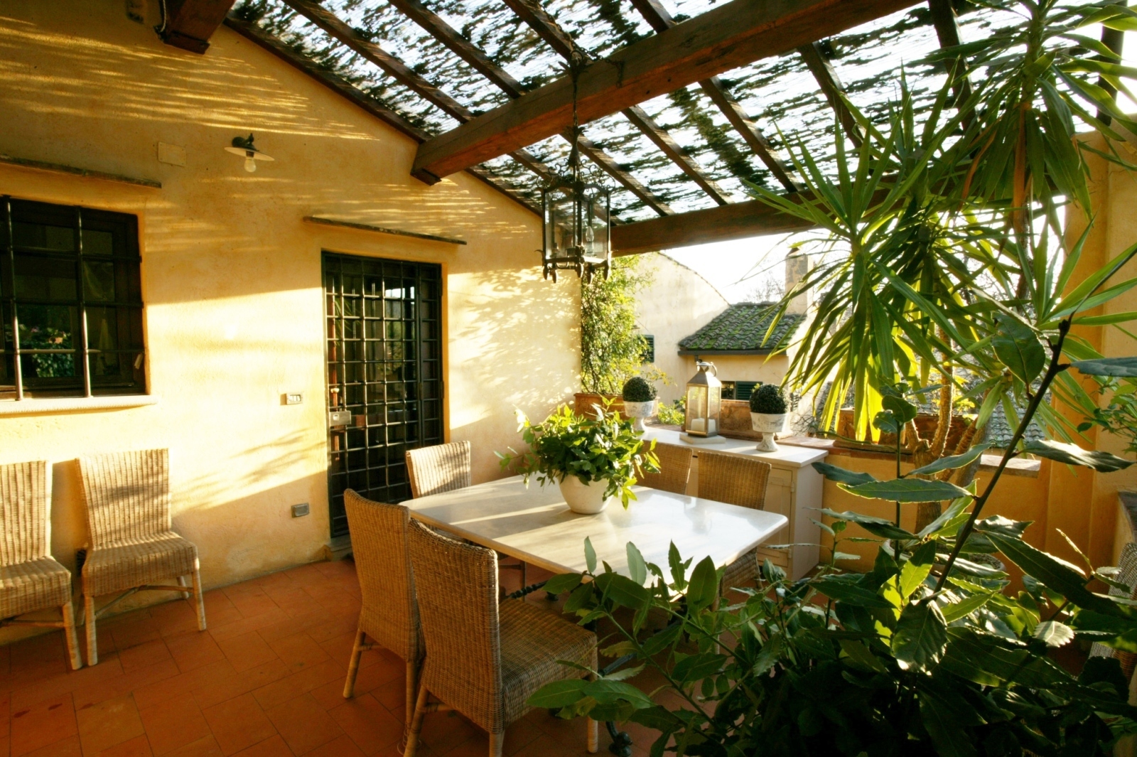 The style of the villa recalls very much in the use of materials and forms the traditional architecture typical of the landscape. The materials used are locally sourced: pietra serena for the steps, terracotta floors, chimney pots, roofs and window sills; chestnut wood for the structural floors, roofs and for the construction of internal doors. Wrought iron for furnishing elements and window grilles.