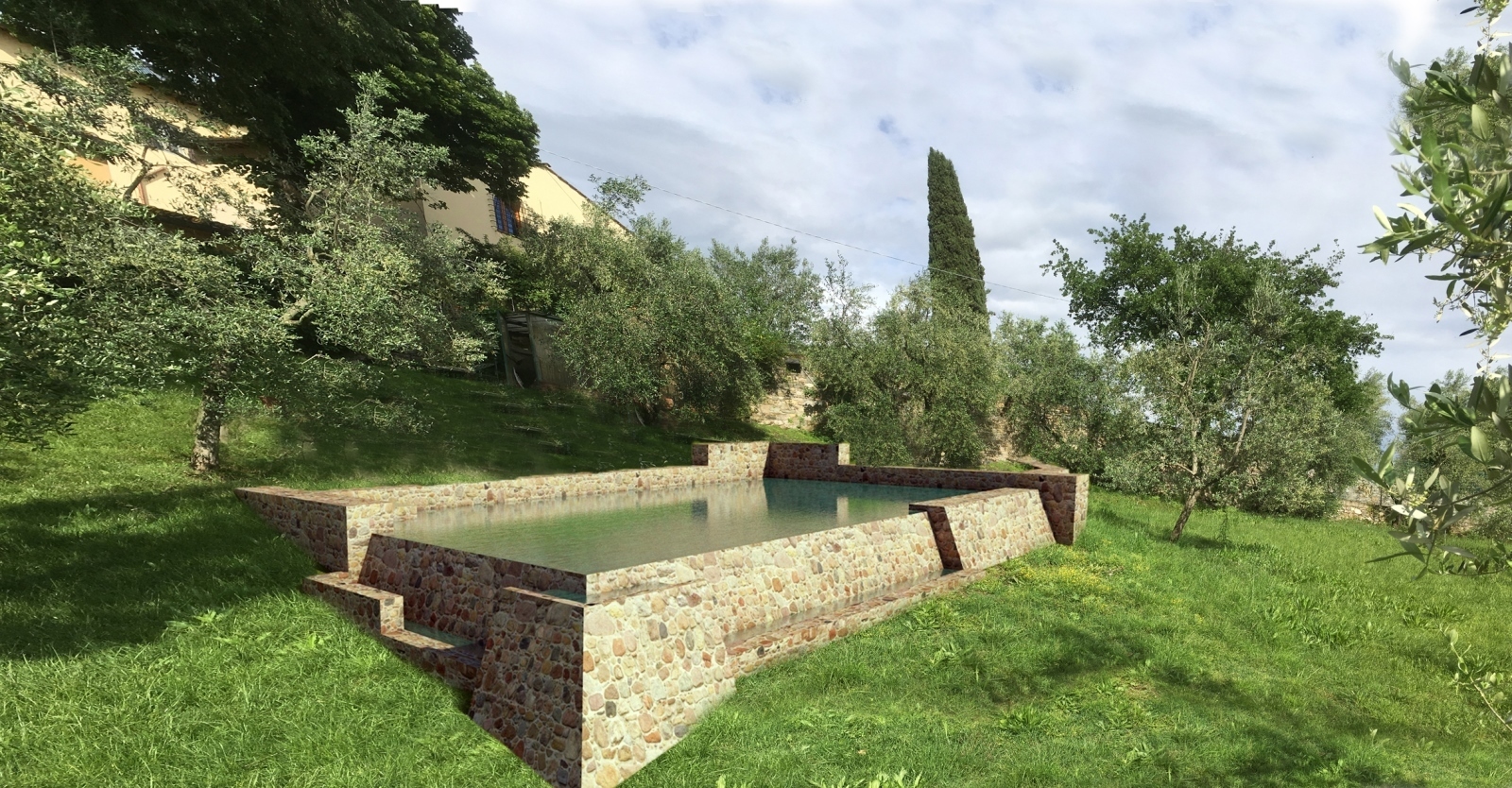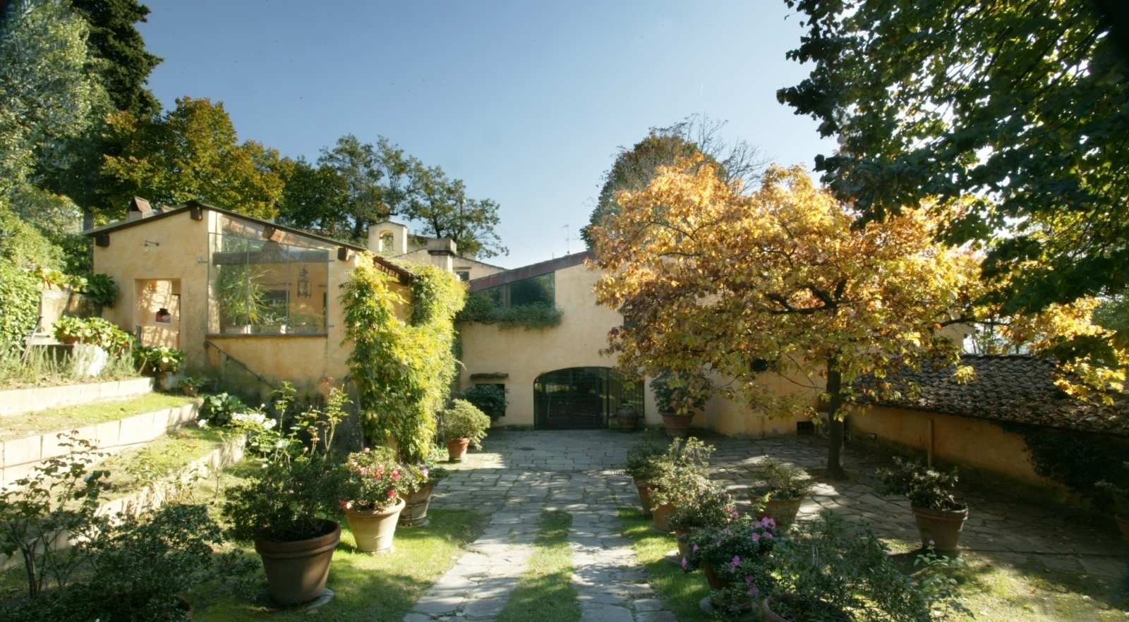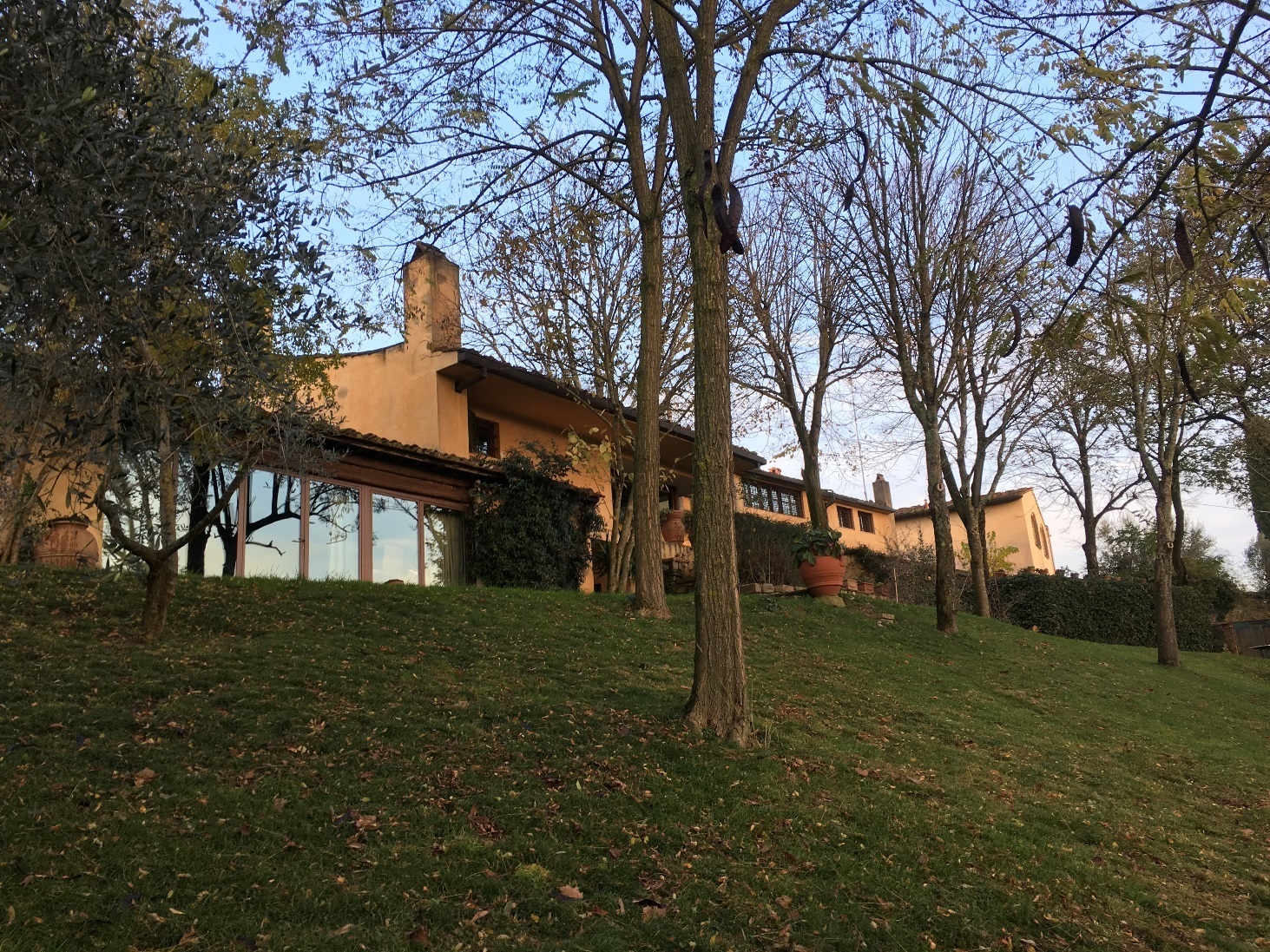 The property was restored in 1965, taking advantage of the volumes of an eighteenth-century building that over the years had repeatedly changed its use from a religious building and back to a monastery. The part of the cloister with the well and the small bell tower of the monastery is still intact from the original building. A careful design for an environmental inclusion with a style that resumed the shapes and volumes of Tuscan rural architecture, executed by the architect Pier Niccolo Berardi, has made it one of the most beautiful villas on the Fiesole slope.