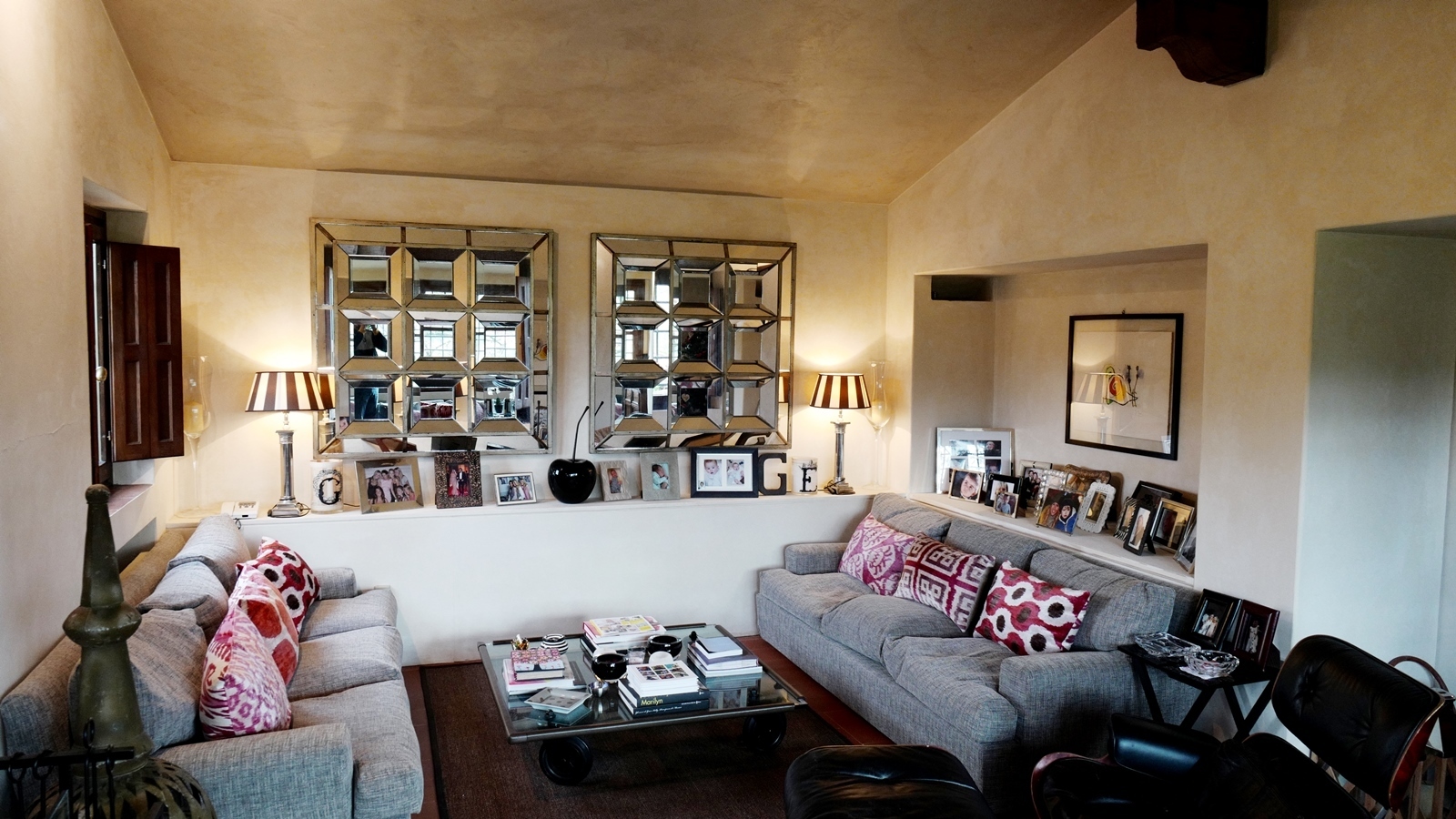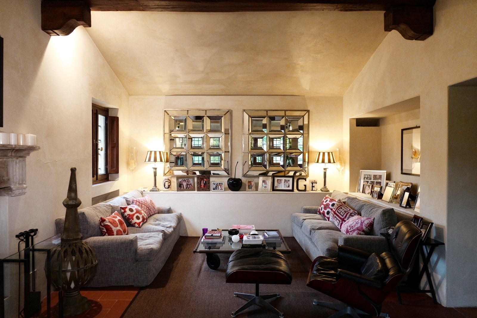 Some areas of the house are built with vaulted ceilings with barrel vaults, built with salvaged bricks.