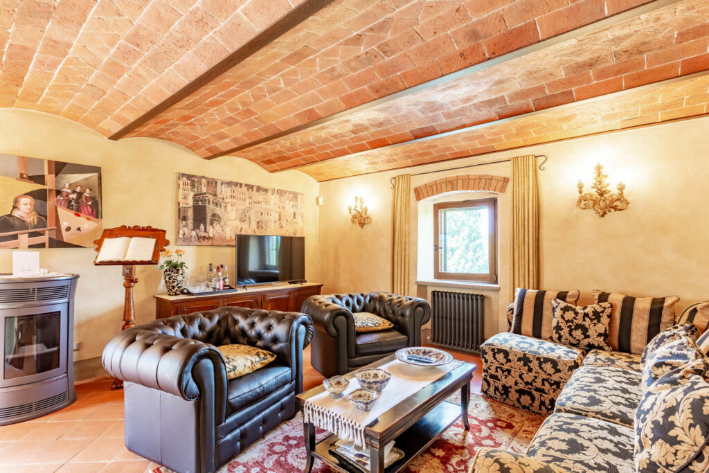 The splendid renovation has retained the delightful touches of Tuscan tradition such as vaulted ceilings, terracotta floors, beautiful stone walls, fresh and bright interiors in addition to the original artwork, brocaded fabrics and en-suite bathrooms. Parquet flooring was preferred for some rooms. Thermal insulation in the roof and walls is high.