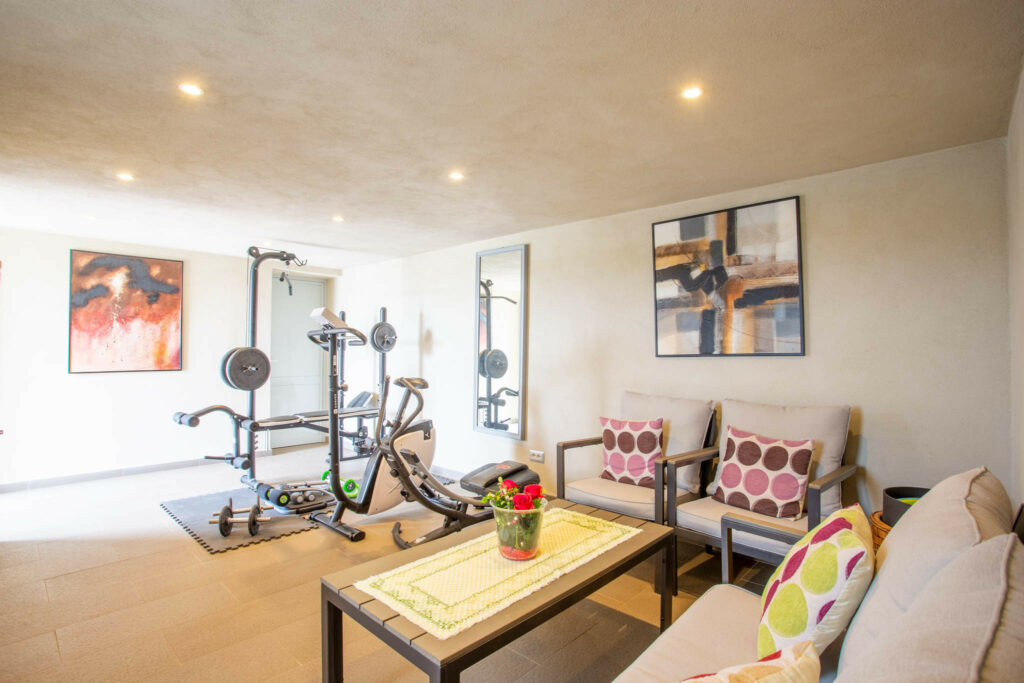 On the panoramic terrace the pool house has a well-equipped fitness room and relaxation room in addition to the bathroom with shower.