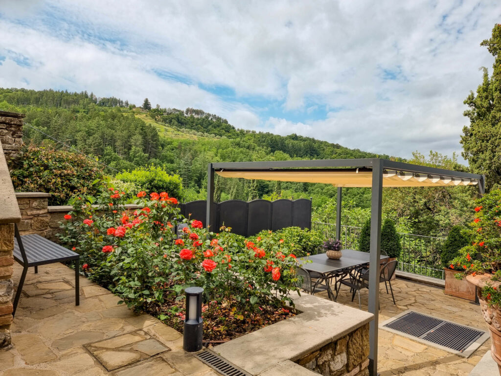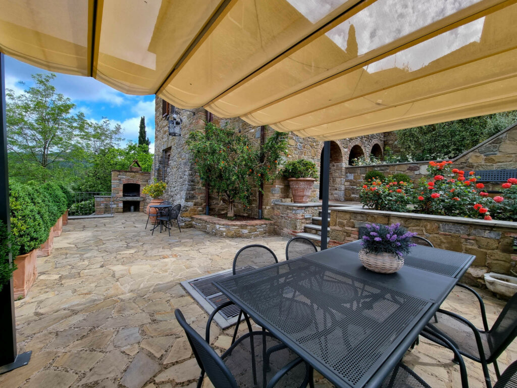 Outside is the well-kept garden on three levels and the three terraces all with unobstructed views of the Chianti woods and vineyards.